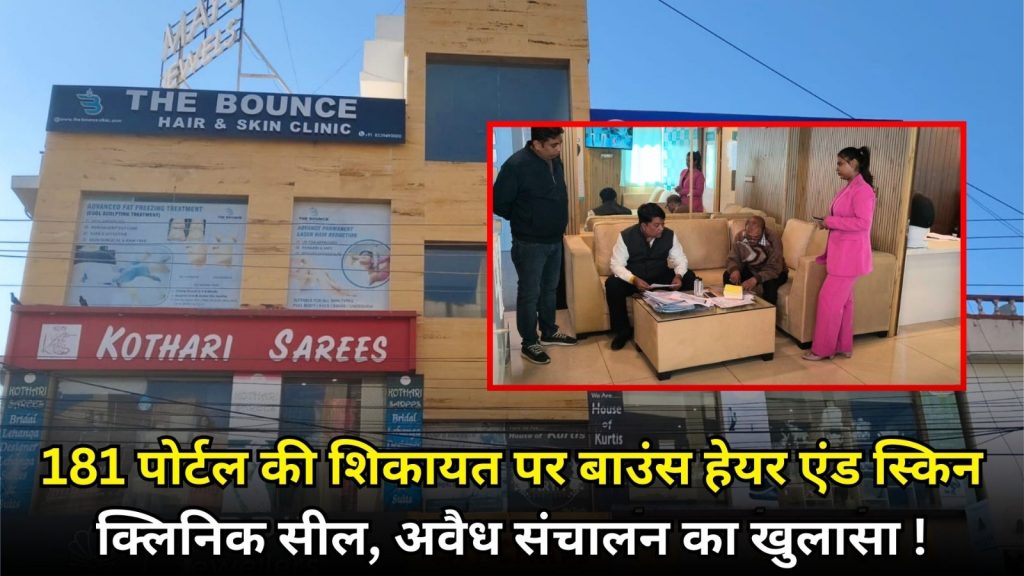 उदयपुर। शहर में बिना वैध अनुमति और बिना मान्यता प्राप्त चिकित्सक के संचालित हो रहे एक हेयर एंड स्किन क्लिनिक पर स्वास्थ्य विभाग ने बड़ी कार्रवाई की है। 181 पोर्टल पर दर्ज शिकायत के बाद जांच में गंभीर अनियमितताएं सामने आने पर द बाउंस हेयर एंड स्किन क्लिनिक को सील कर दिया गया है। साथ ही क्लिनिक संचालक के खिलाफ एफआईआर दर्ज कराने की प्रक्रिया शुरू कर दी गई है।