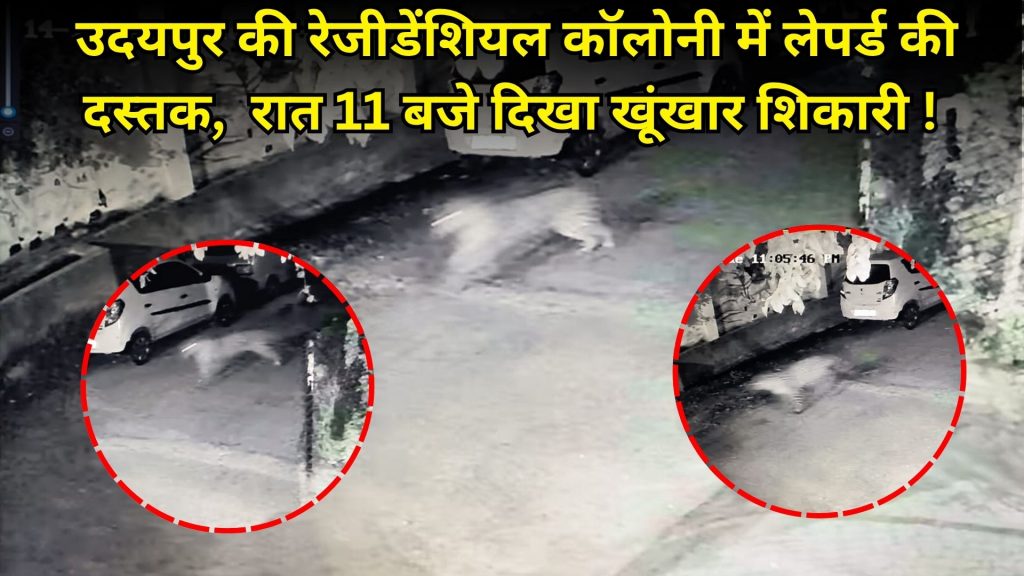 उदयपुर। शहर के मीरा नगर-2 इलाके में मंगलवार की रात उस वक्त हड़कंप मच गया, जब अचानक एक तेंदुआ कॉलोनी की गलियों में घूमता हुआ नजर आया। देर रात तक चली अफरा-तफरी और सीसीटीवी फुटेज ने लोगों की नींद उड़ा दी। इस फुटेज में तेंदुआ सड़क पर टहलता, एक कुत्ते पर झपट्टा मारते और फिर कुछ देर इधर-उधर मंडराते हुए दिखाई दे रहा है।