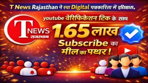 T News Rajasthan ने रचा डिजिटल पत्रकारिता में इतिहास, यूट्यूब वेरिफिकेशन टिक के साथ 1.65 लाख सब्सक्राइबर्स का मील का पत्थर उदयपुर