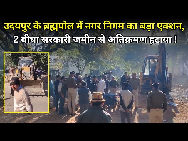 उदयपुर। शहर के ब्रह्मपोल क्षेत्र में नगर निगम ने अतिक्रमण के खिलाफ बड़ी कार्रवाई करते हुए करीब 2 बीघा सरकारी जमीन को कब्जे से मुक्त कराने की कार्रवाई शुरू की। यह जमीन ब्रह्मपोल मस्जिद के सामने स्थित है, जिसकी बाजार कीमत 30 से 35 करोड़ रुपये आंकी जा रही है। कार्रवाई शनिवार सुबह करीब 9 बजे शुरू हुई।